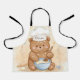 L'adorable tablier d'enfants personnalisé abrite un petit chef ours en peluche remuant un bol de pâte avec une cuillère en bois. Il porte le casquette d'un chef blanc avec le nom de votre proche.