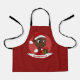 Kids' apron with an illustration of a cute smiling happy African American boy, the baby is wearing a Santa Claus costume with a red hat and holding a present, in a red circle; with a customizable text template for your child's name or message