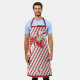 Tablier de Noël à rayures de bonbon avec des rayures vertes, rouges et blanches, un grand bonbon et un contour de petite baie de houx. Parfait pour la pâtisserie des fêtes !