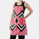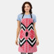 Ce tablier est décoré dans un style art déco avec des formes diamant en noir, blanc et rose sur un champ de pastèque.