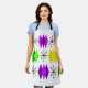 Ce tablier a un design moderne du milieu du siècle de diamants et starbursts dans les couleurs Mardi Gras des tons de violet, vert et jaune