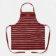 Bandes blanches horizontales et élégantes sur un tablier rouge foncé, avec votre nom et des mots spéciaux imprimés dessus