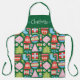 Un motif moderne et élégant tablier de Noël avec des illustrations géométriques d'inspiration rétro d'ornements, bas, sucres de canne, cadeaux, arbres de Noël, flocons de neige, cloches et plus encore. Cela peut être personnalisé avec un nom, un monogramme ou votre propre message. Un cadeau de Noël amusant et unique. Les couleurs comprennent : vert, rouge, blanc, bleu et rose.