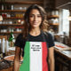 Apron Drapeau Italien Gras. Personnalisez-le avec le nom du cuisinier ou le nom du restaurant. Conçu sur mesure pour les cuisines italiennes, que ce soit pour un restaurant ou votre maison, ce design présente les couleurs du drapeau italien (vert, blanc et rouge). Le modèle de texte peut être customisé à dire ce que vous voulez qu'il dise.