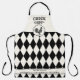 Un drôle de tablier de chef avec un design rétro noir et (off) blanc (ivoire) avec un poulet (en option). Le texte du bas est défini sur une forme séparée (rectangle) qui peut être supprimée dans l'éditeur avancé si vous n'en avez pas besoin.