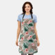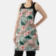 Design moderne de tablier tropical avec des illustrations d'aquarelle feuille de monstère, de banane et de palmier ainsi que des fleurs d'hibiscus roses sur un arrière - plan crème.