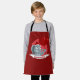 Tablier pour enfants avec illustration d'un joli éléphant joyeux avec un casquette de Père Noël rouge et blanc et des ballons rouges; conception de vacances de Noël pour enfant