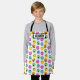Créez un tablier de cuisine personnalisé pour votre chef préféré. Ce tablier présente un motif de visages émoticônes de dessins animés. Les émoticônes sont roses, bleues, jaunes, vertes et oranges et sont dressées contre un arrière - plan blanc. L'tablier est prêt à être personnalisé avec un nom en caractères noirs gras.