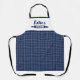 Un tablier moderne, tendance et personnalisé qui ferait un cadeau parfait pour tout cuisinier, cuisinier ou boulanger en herbe. Un motif à feuillage persistant et durable de en vichy bleu marine couvre la plupart de cela sur tablier imprimé. En haut du tablier se trouve un espace blanc clair avec un modèle à personnaliser, il suffit de remplacer le nom dans la zone de texte pour le faire. Sous le nom est une image d'un rouleau pin en bleu avec le mot "cuisine" en lettres blanches imprimé sur elle. Un cadeau customisé pratique pour cette personne spéciale.
