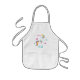 Le tablier d'un enfant mignon comporte une licorne blanche avec une queue d'arc-en-ciel, des coeurs roses et des fleurs bleues. Personnalisez avec le nom pour un cadeau spécial.
