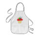 Le petit gâteau de Noël badine le tablier. Tablier personnalisable d'un petit gâteau rouge mignon de Noël qui a un présent pourpre, l'arbre de Noël, et un flocon de neige bleu là-dessus.