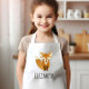 L'tablier pour amoureux des animaux de cet enfant présente une jolie illustration de renard. Personnalisez-le avec le nom de votre enfant en lettres de style d'impression à la main noir. Un grand tablier pour les garçons et les filles !