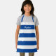 Votre enfant adorera préparer ou vous aider à cuisiner dans ce tablier personnalisé Bleu et Blanc Cute Bleu et Blancs. Ce design moderne a de larges bandes horizontales sur un tablier tout-en-un et le nom est en blanc blanc blanc en lettres blanches sur le dessus.