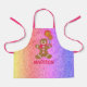 Protégez les vêtements de votre enfant avec cet tablier personnalisé Kids Cute Rainbow Parties scintillant Pain d'épices. Il a un arc-en-ciel faux parties scintillant design arrière - plan avec une fille en pain d'épices sur le centre tenant des lollipops. Personnalisé avec le nom en caractères gras correspondant rose.