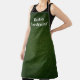 Ce tablier vert est agrémenté d'un motif en herbe et personnalisé avec un nom d'entreprise, ce qui le rend parfait pour la marque.