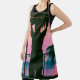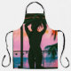 Tablier Femme en débardeur noir et pantalon debout sur le