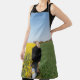 Tablier Femme en manteau noir debout sur un terrain d'herb