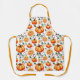 Apron in a fall-themed pattern featuring vibrant orange pumpkins intertwined with blooming chrysanthemums in warm yellow and orange hues, creating a festive harvest-inspired design