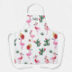 Ce dessin présente un motif de flamants, des ballons de fête et des casquettes de Noël parmi des plantes de cactus fleuris et un monogramme personnalisé en haut #colorful #custom #motif #cool #fun #tendance #noël #vacances #fleurs #aquarelle #cuisine #aprons #girly #stylish #chef #cook
