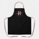 Fille, moderne, élégant, minimaliste noir et rose monogramme nom initial script personnalisé tablier monogrammé personnalisé. Doté d'une initiale monogramme et d'un script de signature de nom de poutre dans une police de calligraphie à la main avec des queues de swash et un cadre en cercle pointillé autour de votre monogramme. Un cadeau féminin parfait pour maman, petite amie, anniversaire et toute personne qui aime un style simple et moderne.