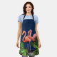 Tablier Flamants roses roses sur bleu classique et vert to