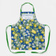 Tablier Fleurs blanches de citrons et monogramme sur bleu