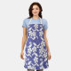 Fleurs blanches modernes dessinées à la main sur un tablier arrière - plan perwinkle. Recherchez des produits de coordination supplémentaires dans la collection de fleurs Periwinkle.