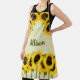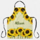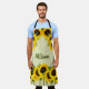 Des tournesols de campagne colorés et rustiques ! Le bord inférieur du tablier reflète une rangée de tournesols à tiges. la zone supérieure/bras a le même motif mais sans les tiges. L'arrière - plan jaune pâle derrière le design peut être changé à n'importe quelle couleur que vous préférez. La police de personnalisation, la taille et la couleur peuvent également être changés pour convenir.