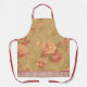 Tablier tout-dessus imprimé moyen avec une image vintage d'une variété de fleurs roses sur bronzage. Bordure large et délicate de feuillage rose et bracelet rose foncé. Voir l’ensemble de la collection de l’aire de fête des mères dans les TOUCHES SPÉCIALES | Section Favoris.