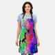 Cet tablier présente un design d'art fractal inspiré de teinture à cravate, avec des couleurs rose, violet, bleu, noir, vert, aqua et rouge.