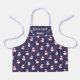 Agréable tablier pour enfants violet avec un joli motif avec de mignons bonhommes de neige avec écharpes rouge et bleu clair et casquettes rouges et noirs, décoré de flocons de neige. La légende de la partie supérieure, décorée de whisky stylisé et d'épingle à rouler, se lit sous Chef en lettres blanches et est personnalisable avec le nom de l'enfant.