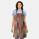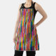 Ce tablier a une conception géométrique de bandes colorées qui tournent verticalement.