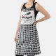 tablier grand-mère mignon avec un arrière - plan de buffle noir et blanc, un pot de sel/poivre arrosant le coeur rouge, et l'adorable citation "grand-mère saisit tout avec amour".