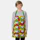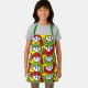 Green Red Vegetable Motif pour enfants Apron. Epaule végétale rouge vert avec motif blanc fleur fantaisie sur arrière - plan jaune design pour amoureux du jardinage, amoureux plante.