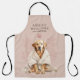 Tablier d'affaires moderne, élégant et élégant. Design avec votre nom et titre, chien aquarelle dans une icône en robe avec des éléments floraux sur un arrière - plan blush. Parfait pour les affaires de toilettage d'animaux.