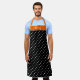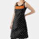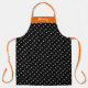 Ce tablier en caractères complets présente des pois blancs en noir avec une section orange d'Halloween en haut pour votre nom personnalisé.