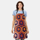 Cet tablier a un design géométrique d'hexagones dans quatre nuances d'orange sur un champ de bandes noires et violettes.