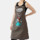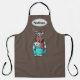 Amusant et moderne hiver / vacances avec tablier à thème de l'illustration de cerf hipster portant pull et foulard de vacances, avec nom personnalisable ovale sur arrière - plan brun