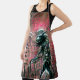 Créature alien métallique verte géante envahissant une ville métropolitaine. Wombo Dream AI et collaboration d'artistes.
