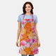 Tablier Jardin d'été rose et orange vif Monogramme Fleur
