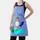 Ce magnifique tablier est doté d'un mignon petit pingouin gris et blanc aux yeux noirs beady et au bec et aux pieds jaunes. Le pingouin tient un gros poisson bleu avec une nageoire et se tient sur un morceau de glace bleu pâle. Un présent ouvert à côté du pingouin est accompagné d'un ruban festif.