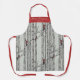Ce tablier moderne vert et rouge de la saison des fêtes personnalisées présente des bouleaux dessinés à la main avec des oiseaux cardinaux rouges perchés sur des branches à l'encre noire, contre un élégant arrière - plan vert sauge clair. Personnalisez avec votre salutation de vacances préférée et votre nom.