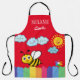 Joyeux soleil d'abeille au miel nuages arc-en-ciel clôture arrière - plan rouge motif pour le chef en herbe en vous. Vous pouvez customiser le nom sur l'aire de trafic.
