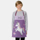 Ce joli tablier mignon et blanc pour enfants violets présente une caricature unicorne, une planète, des étoiles, une couronne, un arc-en-ciel et un coeur, et peut être personnalisé avec votre nom de filles. Le cadeau magique parfait pour votre petit chef ou jardinier !
