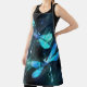Deux libellules transparentes, lumineuses, turquoise, artistiquement dessinées sur l'arrière - plan de nuit avec des algues luminescentes et des lucioles. libellule éclatante.