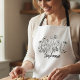 Embrassez la beauté simple de la nature avec ce tablier élégant noir et blanc à motif de fleurs sauvages. Avec son illustration botanique délicate et dessinée à la main ainsi qu'un nom personnalisable, ce tablier est un cadeau attentionné et charmant pour la pâtissière, la jardinière ou l'artisane spéciale de votre vie. Parfait pour les anniversaires, la fête des mères ou comme cadeau unique pour une douche de mariage, il ajoute une touche de style serein et personnalisé à toute cuisine ou espace créatif.