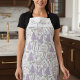 Cuisinez avec charme dans ce tablier personnalisé. Caractéristiques d'un motif floral sans couture de pivoines pastel, de lilas lavande et de feuilles vertes sur fond blanc clair — idéal pour la décoration de cuisine cottagecore. Ajoutez n'importe quel nom dans un script élégant, lavable en machine, cadeau de lavande parfait.