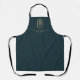 Logo chic bohème à fleurs dorées, tablier professionnel. Cadre souple en feuille dorée avec tige florale et main délicate sur arrière - plan de couleur turquoise foncée.