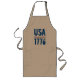 USA et 1776 dans une police unique est imprimé en bleu sur cet tablier et mis en surbrillance avec des rayures rouges et bleues et une étoile d'or. Choisissez la couleur de votre tablier parmi celles disponibles. CORRESPONDRE des articles dans notre magasin.