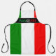 Ce tablier personnalisé comporte l'expression "mangiare" imprimée sur le centre. Mangiare est la traduction italienne pour "manger" et il est imprimé aux couleurs du drapeau italien. Les trois premières lettres sont vertes, les deux secondes sont blanches, et les trois dernières sont rouges. Il est imprimé sur la poitrine au-dessus du drapeau italien.